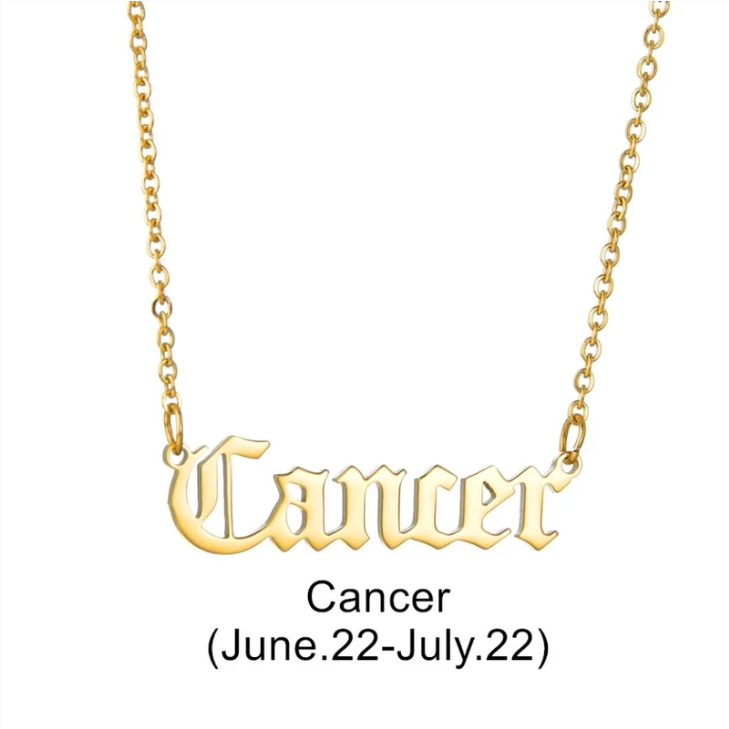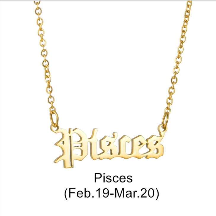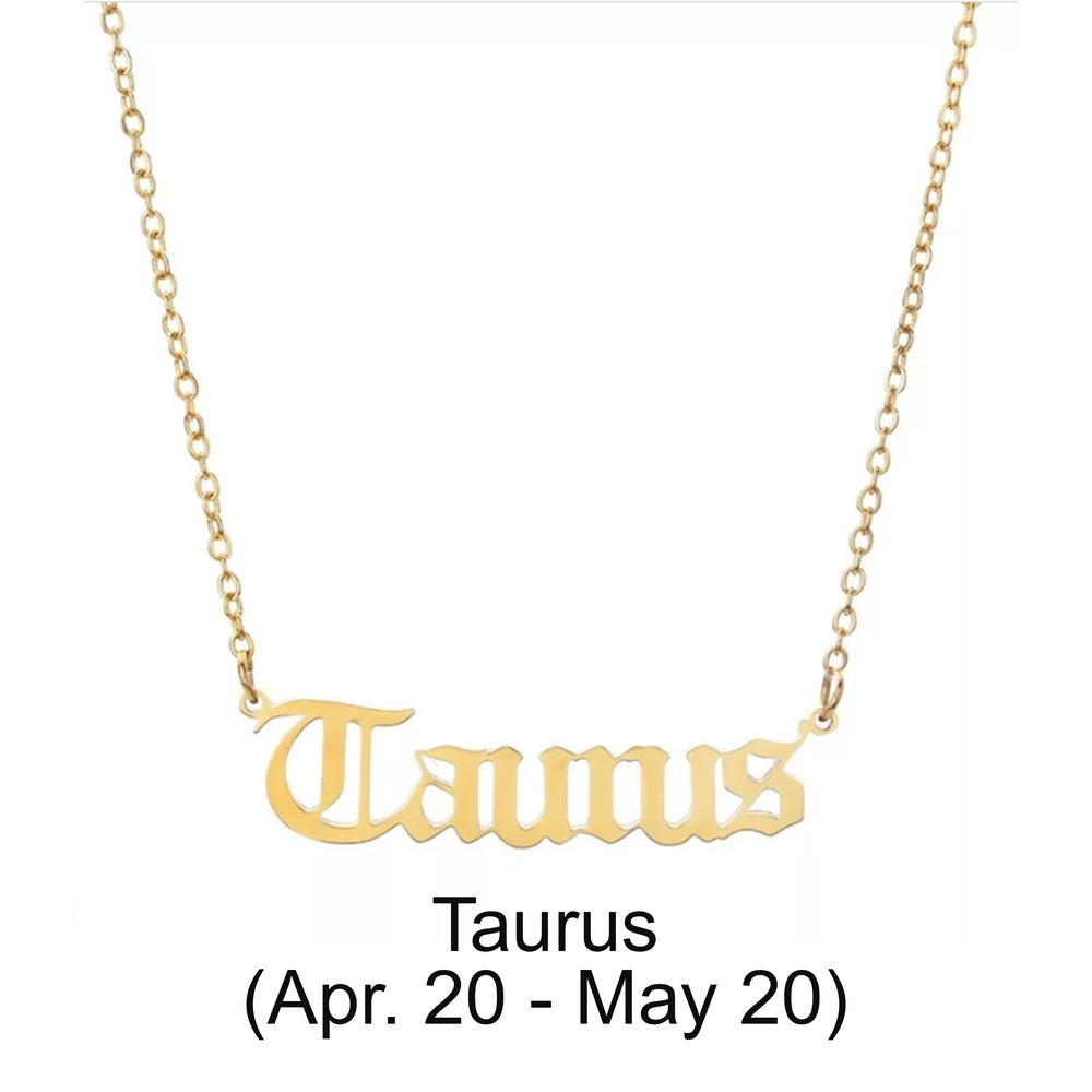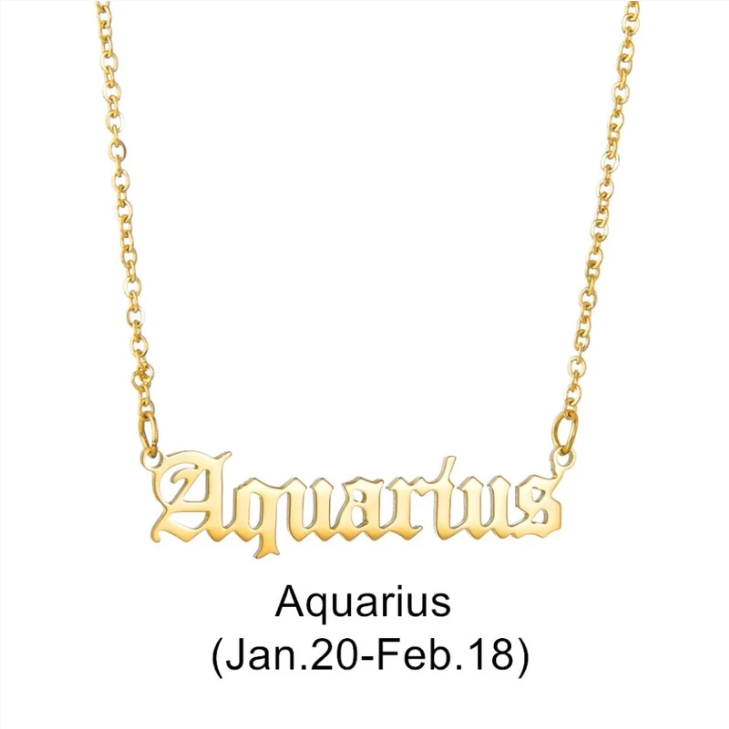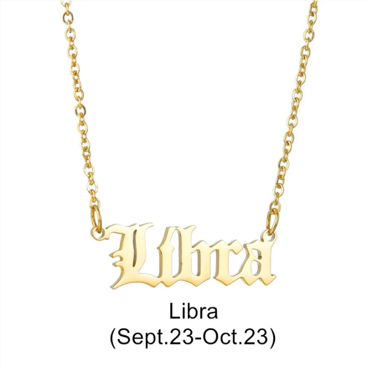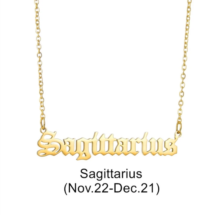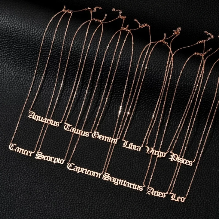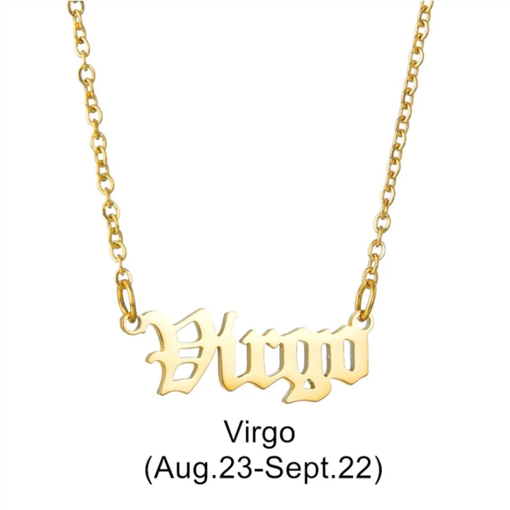 Las letras en inglés antiguo de este collar de oro con el horóscopo lo convierten en una forma elegante de mostrar tu signo del zodíaco. Estos collares con las palabras del signo astrológico son ideales para combinar con otras prendas.