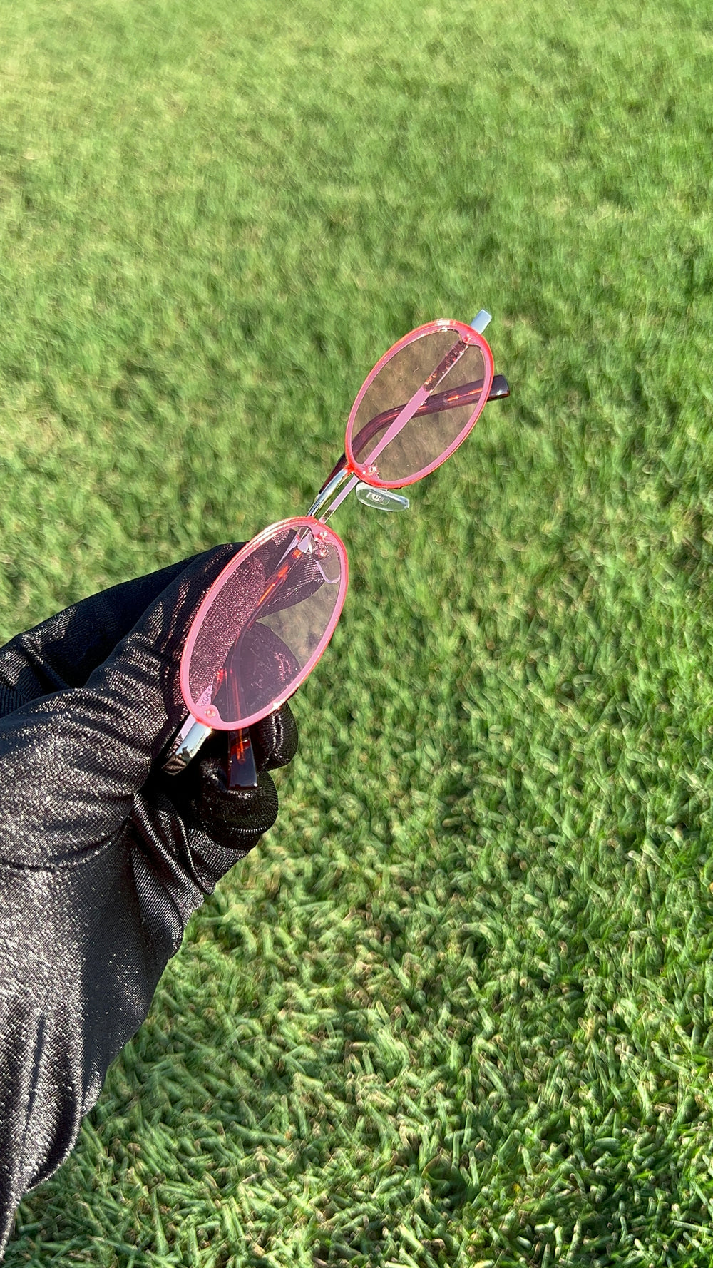 Rimless frames and brilliant color tinted lenses for a fun and vibrant effect. Slim metal frames make them lightweight to wear, while providing an adjustable English style nose piece add comfort during wear. Great for adding a throwback touch to your look. Made with a metal based frame, metal hinges, and 100% UV protected lenses.